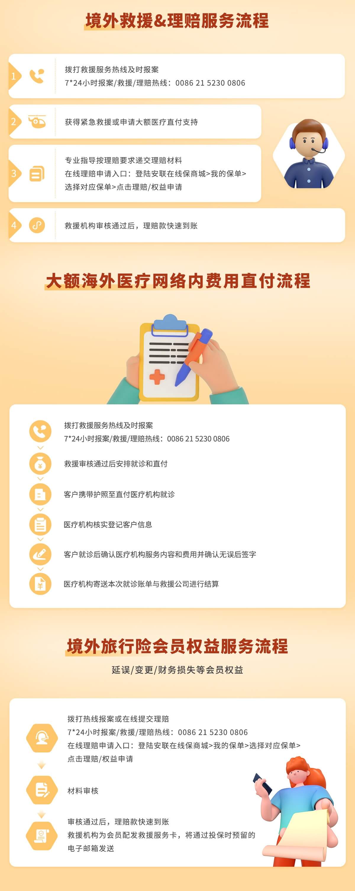 0086 21 5230 0806,您也只需向救援机构提供相关资料即可获得理赔,无需再向保险公司提供材料。