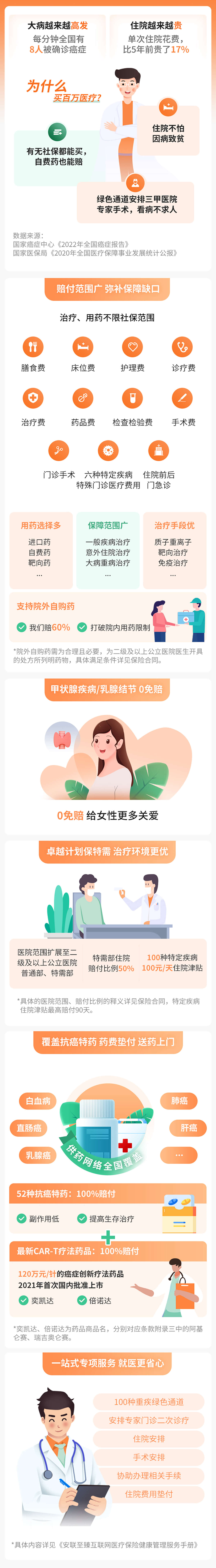 选择卓越计划,医院范围扩展至二级及以上公立医院普通部及特需部,合同约定内的特需部治疗赔付比例为50%,还有100种特定疾病100元/天的住院津贴(年最高90天),大病更有保障。(具体责任的释义和赔付比例详见保险合同)。